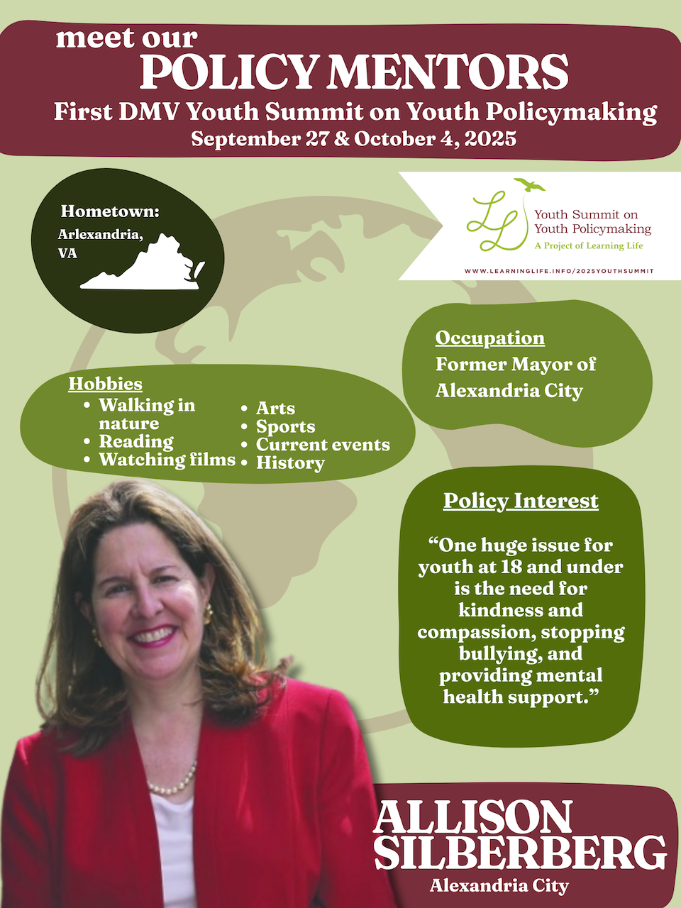 Then volunteer to be a Policy Mentor!  Learning Life, a Washington DC-based nonprofit working to widen participation in democracy and diplomacy, seeks junior and senior policy mentors to mentor up to 120 8th-12th graders from diverse DMV private, public and charter schools as they go through the Summit policymaking process.